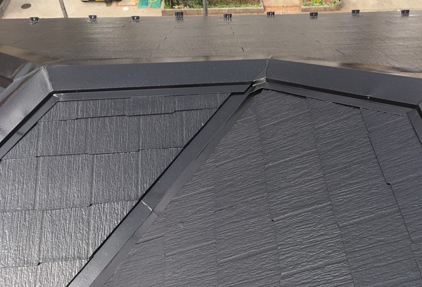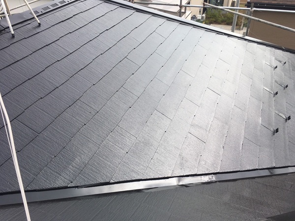 化粧スレート屋根は板金部分とスレート部分とで別々の下塗り材を塗布しました。