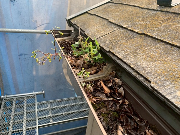 それにより、雨水が雨樋に溜まり、飛んできた種子で雑草が生えていました。