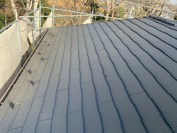 施工前はオレンジ色のコケが広がっていたスレート屋根も、スタイリッシュで新築の屋根のように美しく仕上がりました。