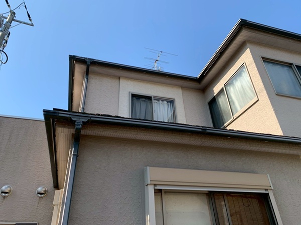 付帯部はシャッターボックス、水切り、軒天、鼻隠し、雨樋、破風板、帯板と塗装させていただきました。