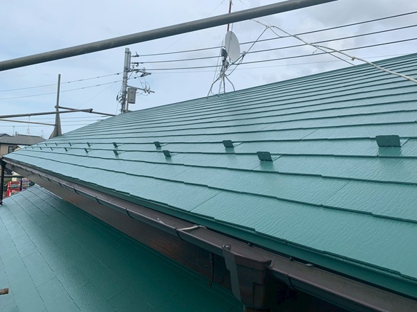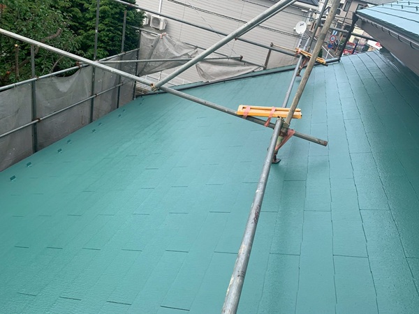 屋根の塗料はエスケー化研の2液型ヤネフレッシュシリコンが採用されました。