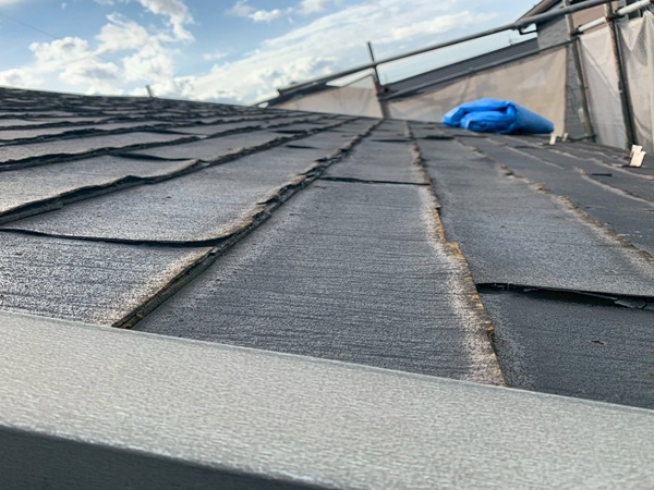 N様邸でも屋根材の反り・割れ・剥離が著しく進んでおり、塗装による補修では対応できないと判断しました。
