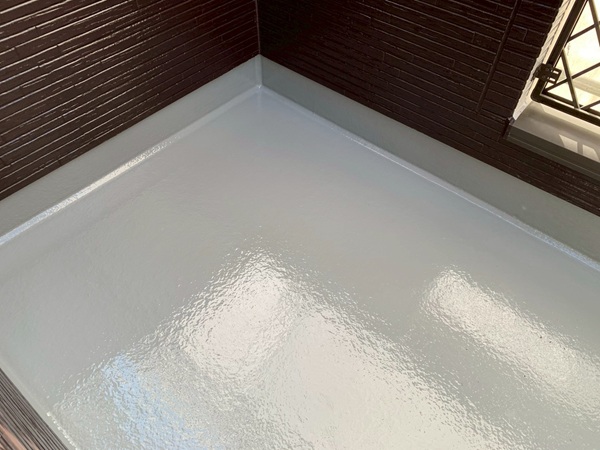 ベランダ床面の防水トップコートも塗り替えを行い、防水層の保護機能を回復させました。