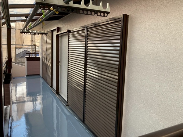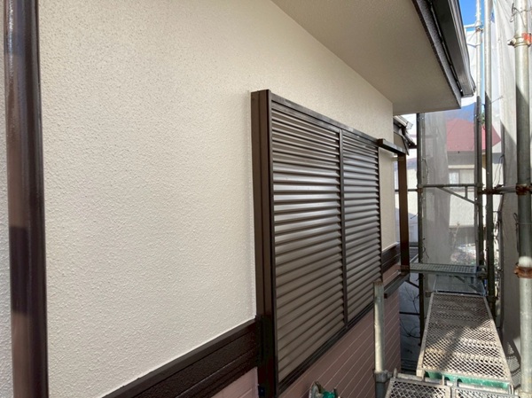 雨戸・シャッターはスプレーガンで均一に塗布し、細部まで丁寧に仕上げました。