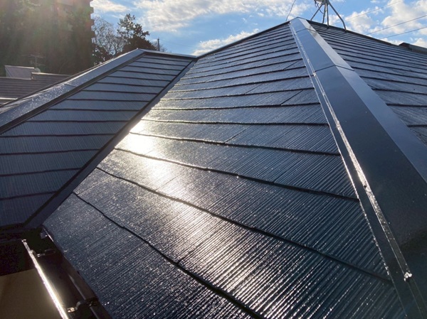 S様邸は以前、別の塗装業者に施工を依頼したことがあり、屋根材の隙間を埋めるように塗料が塗られていました。